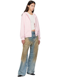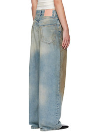 Non-stretch denim jeans. · Fading, distressing, and whiskering throughout · Loose-fit · Low-rise · Belt loops · Five-pocket styling · Button fly · Leather logo patch at back waistband Supplier color: Mid blue 100% cotton. Made in Italy 252129F069022