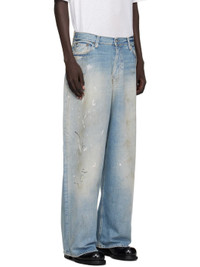 Non-stretch cotton- and lyocell-blend denim jeans. Fading, whiskering, distressing, paint splatters, and smudging throughout. · Wide-leg · Belt loops · Five-pocket styling · Button fly · Leather logo patch at back waistband · Logo-engraved copper- and silver-tone hardware · Contrast stitching in tan Supplier color: Light Blue 60% cotton, 40% lyocell. Made in Italy 252129M186022