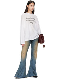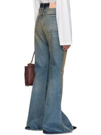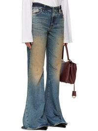 Non-stretch denim jeans. · Bootcut · Fading, whiskering, and subtle distressing throughout · Belt loops · Five-pocket styling · Zip fly · Leather logo patch at back waistband Supplier color: Dark blue 100% cotton. Made in Italy 252129F069002