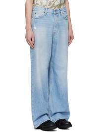 Baggy-fit and wide-leg non-stretch organic cotton denim jeans. Subtle distressing, fading, and whiskering throughout. · Low-rise · Belt loops · Five-pocket styling · Button fly · Leather logo patch at back waistband · Logo-engraved antiqued silver- and copper-tone hardware · Contrast stitching tan Supplier color: Light blue Body: 100% cotton. Trim: 100% leather. Made in Italy 251129M186027