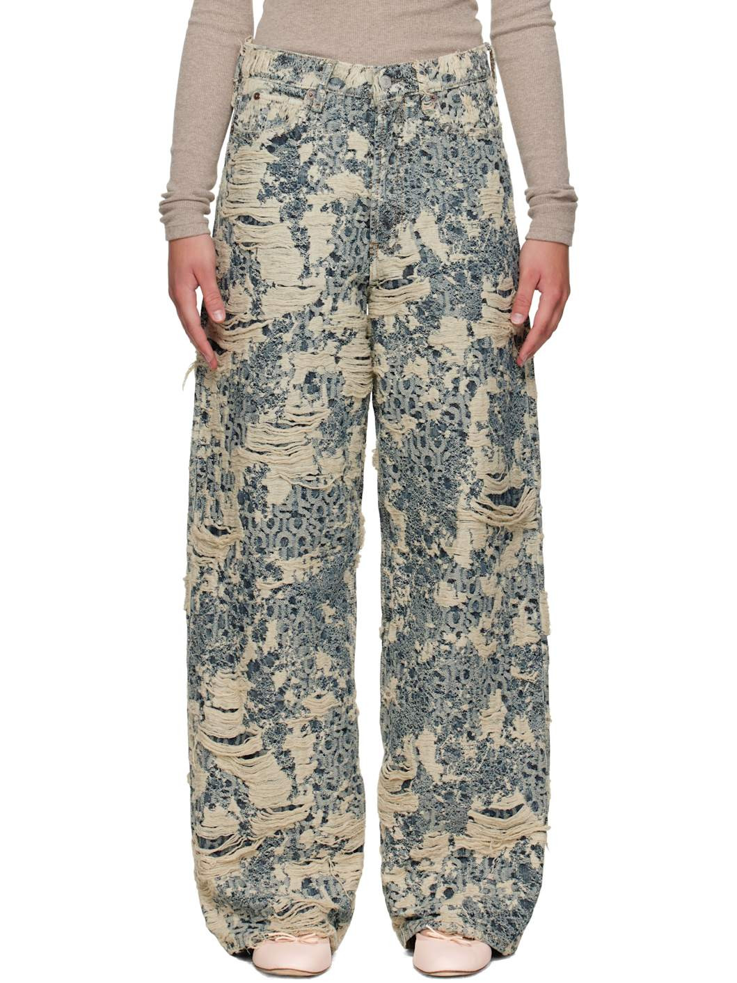 Non-stretch organic cotton denim jeans. · Jacquard logo pattern and distressing throughout · Loose-fit · Mid-rise · Belt loops · Five-pocket styling · Button fly · Leather logo patch at back waistband Supplier color: Mid blue 100% organic cotton. Made in Italy 252129F069019