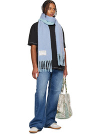Rectangular brushed alpaca- and wool-blend flannel scarf. · RWS-certified wool · Logo patch at face · Fringed detailing at ends · L98.5" x W10" Supplier color: Blue/Light blue 50% alpaca, 30% wool, 20% nylon. Made in Italy 252129M150057