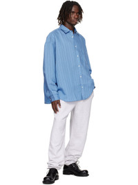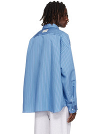 Lyocell-blend twill shirt. · Striped throughout · Spread collar · Button closure · Shirttail hem · Dropped shoulders · Buttoned barrel cuffs · Logo patch at back collar Supplier color: Blue multi 84% lyocell, 16% polyester. Made in Morocco 252129M192021
