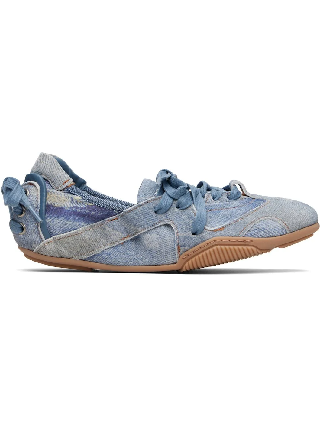 Low-top calfskin suede sneakers. · Trompe l'oeil denim pattern printed throughout · Lace-up closure · Logo embossed at padded tongue · Elasticized collar · Lace-up detailing at heel counter · Buffed lambskin lining · Treaded rubber sole · Contrast stitching in tan Supplier color: Beige/Blue Upper: calfskin. Sole: rubber. Made in Italy 261129F128002