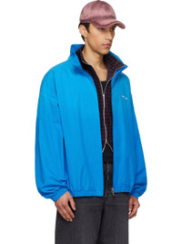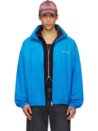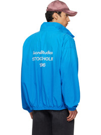 Organic cotton poplin jacket. · Fading throughout · Stand collar · Two-way zip closure · Logo printed at chest and back · Seam pockets at waist · Elasticized hem and cuffs · Dropped shoulders · Full mesh lining Supplier color: Bright blue Body: 100% organic cotton. Lining: 82% nylon, 18% elastane. Made in Portugal 261129M180006
