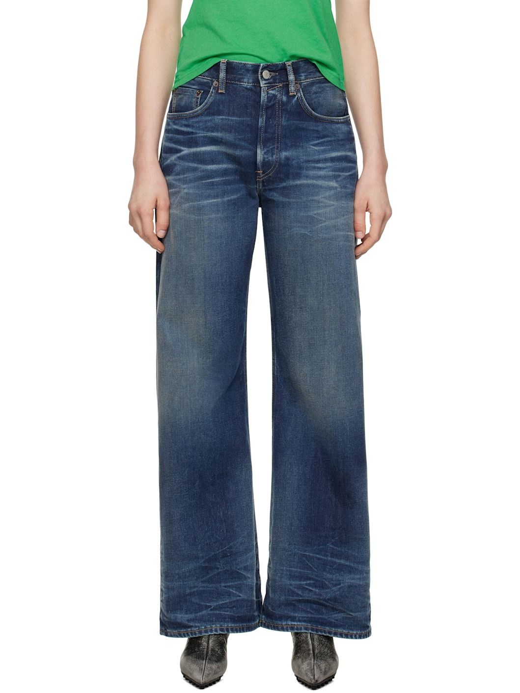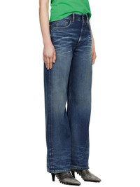 Non-stretch organic- and recycled cotton-blend denim jeans. Fading and whiskering throughout. · Loose-fit and wide-leg · Mid-rise · Belt loops · Five-pocket styling · Button-fly · Leather logo patch at back waistband · Logo-engraved silver- and copper-tone hardware · Contrast stitching in tan Supplier color: Mid blue Body: 80% organic cotton, 20% recycled cotton. Trim: 100% cow leather. Made in Italy 251129F069022