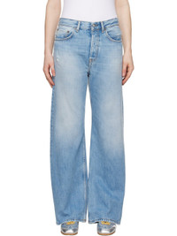 Loose-fit and wide-leg non-stretch organic cotton denim jeans. Fading, whiskering, and distressing throughout. · Mid-rise · Belt loops · Five-pocket styling · Button fly · Leather logo patch at back waistband · Logo-engraved silver- and copper-tone hardware · Contrast stitching in tan Supplier color: Light blue 100% organic cotton. Made in Italy 251129F069020