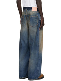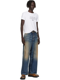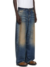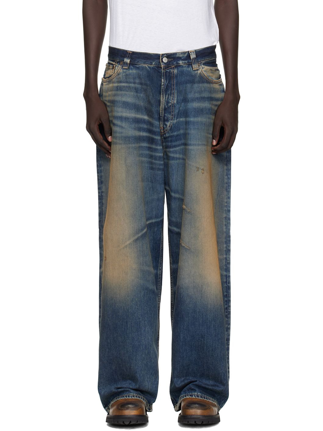 Non-stretch organic cotton denim jeans. · Whiskering, distressing, and smudging throughout · Loose-fit · Low-rise · Belt loops · Five-pocket styling · Button fly · Leather logo patch at back waistband · Logo-engraved silver-tone hardware · Contrast stitching in tan Supplier color: Dark Blue 100% cotton. Made in Italy 252129M186023