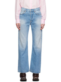 Loose-fit and wide-leg non-stretch organic cotton denim jeans. Fading, whiskering and distressing throughout. · Mid-rise · Belt loops · Five-pocket styling · Button-fly · Leather logo patch at back waistband · Logo-engraved silver-tone hardware · Contrast stitching in tan Supplier color: Light blue 100% organic cotton. Made in Italy 242129F069006