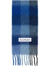 Rectangular brushed alpaca- and wool-blend flannel scarf. · Check pattern throughout · Logo patch at face · Fringed detailing at ends · L108" x W11" Supplier color: Dark navy/Black/Blue 33% alpaca, 25% wool, 22% nylon, 20% mohair. Made in Italy 252129M150025