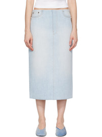 Blue Padded Denim Midi Skirt