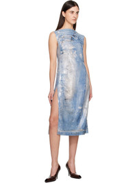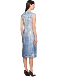 Sequinned polyester-blend georgette midi dress. Trompe l'œil graphic printed throughout. · Boat neck · Slit at hem · Concealed zip closure at back · Full satin lining Supplier color: mid blue Body: 95% polyester, 5% nylon. Lining: 100% viscose. Made in Italy 251129F054000