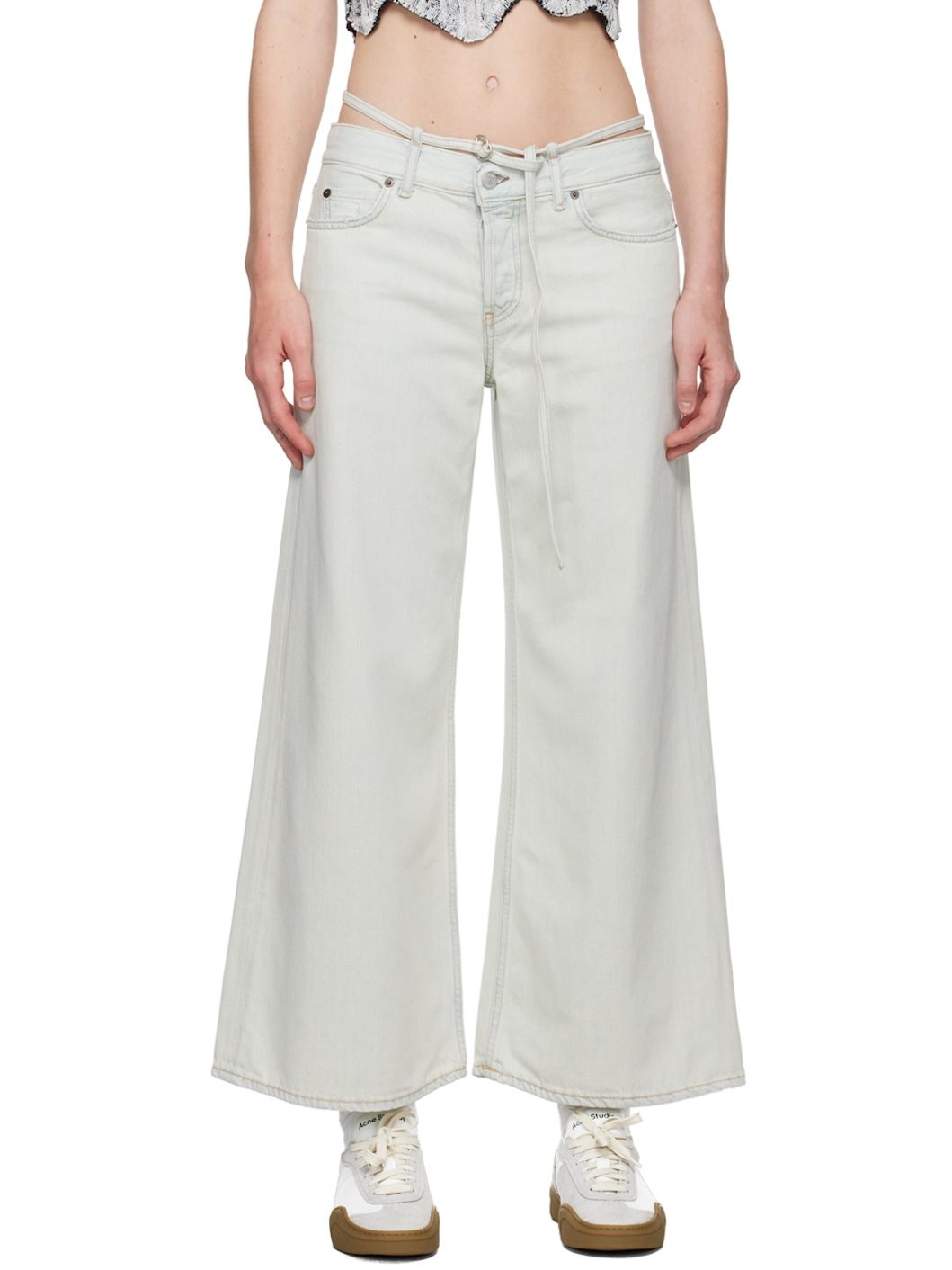 Flared non-stretch denim jeans. Fading throughout. · Low-rise · Belt loops · Detachable cinch belt · Five-pocket styling · Button-fly · Leather logo patch at back waistband · Logo-engraved copper-tone hardware · Contrast stitching in beige Supplier color: Light blue Body: 100% cotton. Lining: 65% polyester, 35% cotton. Made in Italy 242129F069005