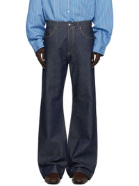 Non-stretch organic cotton denim jeans. · Straight-leg · Mid-rise · Belt loops · Five-pocket styling · Button fly · Leather logo patch at back waistband · Logo-engraved silver- and copper-tone hardware · Contrast stitching in tan Supplier color: Indigo Blue 100% cotton. Made in Italy 252129M186032