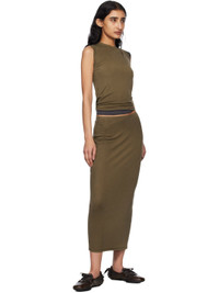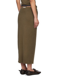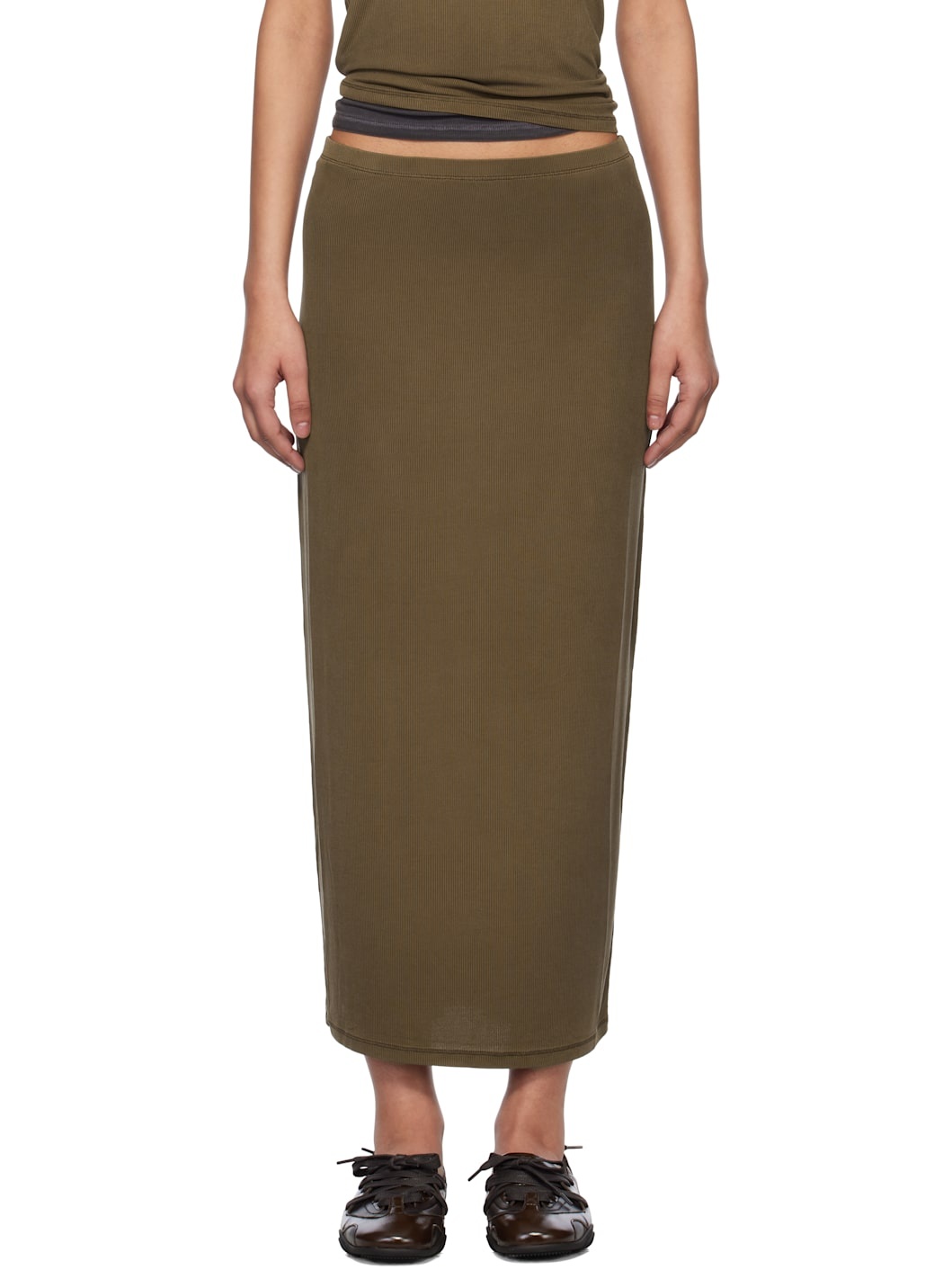 Stretch cupro ribbed jersey midi skirt. · Elasticized waistband · Logo patch at back waistband Supplier color: Mud brown 95% cupro, 5% elastane. Made in Portugal 251129F093001