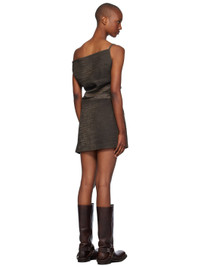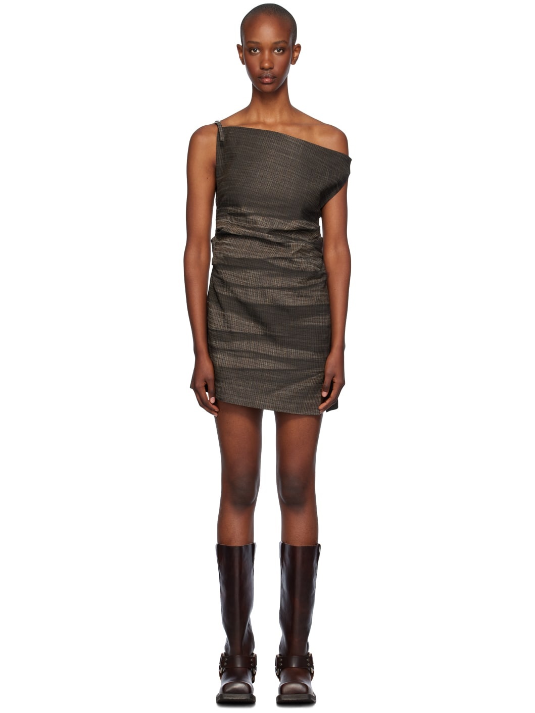 Basket-woven linen- and viscose-blend dress. Graphic pattern printed throughout. · Asymmetrical off-the-shoulder construction · Adjustable pin-buckle shoulder strap · Pleats at side seams · Concealed zip closure at side seam · Vent at side seam · Full satin lining Supplier color: Black melange Body: 60% linen, 26% viscose, 14% polyester. Lining: 100% viscose. Made in Portugal 242129F052007
