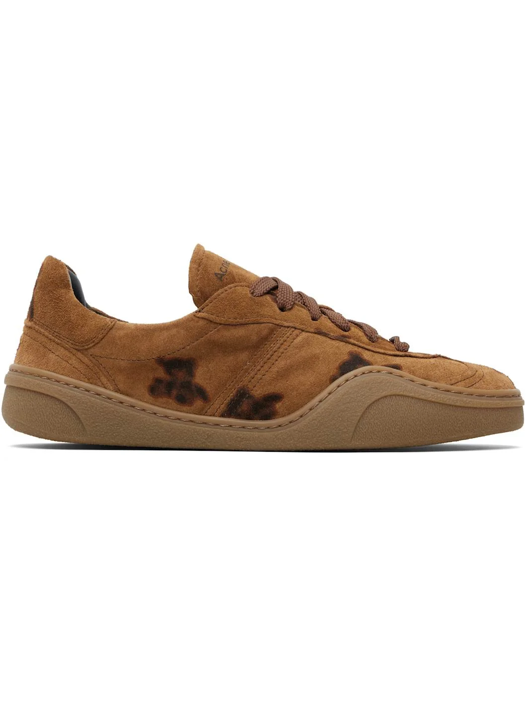 Low-top calfskin suede sneakers. · Leopard pattern printed throughout · Lace-up closure · Logo printed at padded tongue · Padded collar · Perforations at inner side · Mesh and faux-leather lining · Crepe rubber midsole · Treaded rubber sole Supplier color: Rust Brown Upper: calfskin. Sole: rubber. Made in Italy 261129F128000
