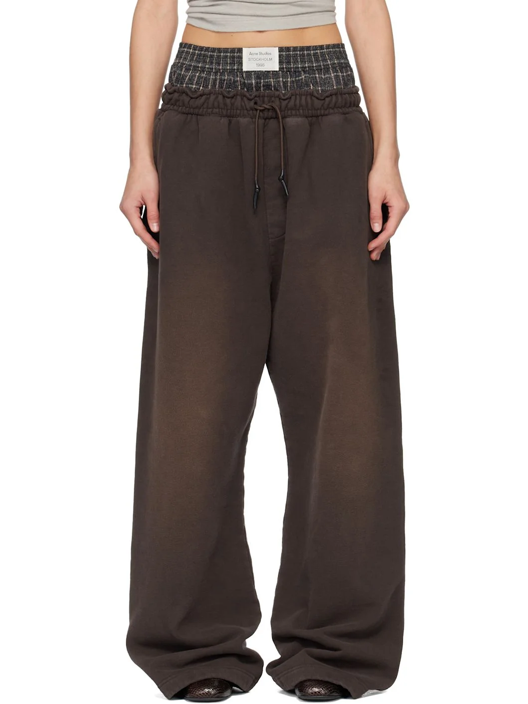 Organic cotton fleece sweatpants. · Check-patterned elasticized waistband · Logo patch at waistband · Drawstring at waistband · Two-pocket styling · Mock fly · Bungee-style drawstring at cuffs · Logo applique at back Supplier color: Dark brown 100% cotton. Made in Portugal 252129F087005