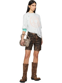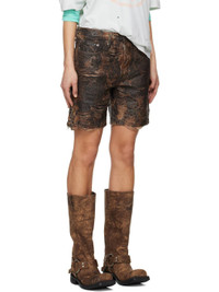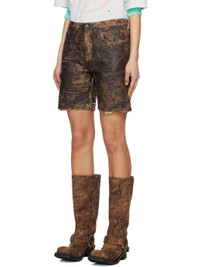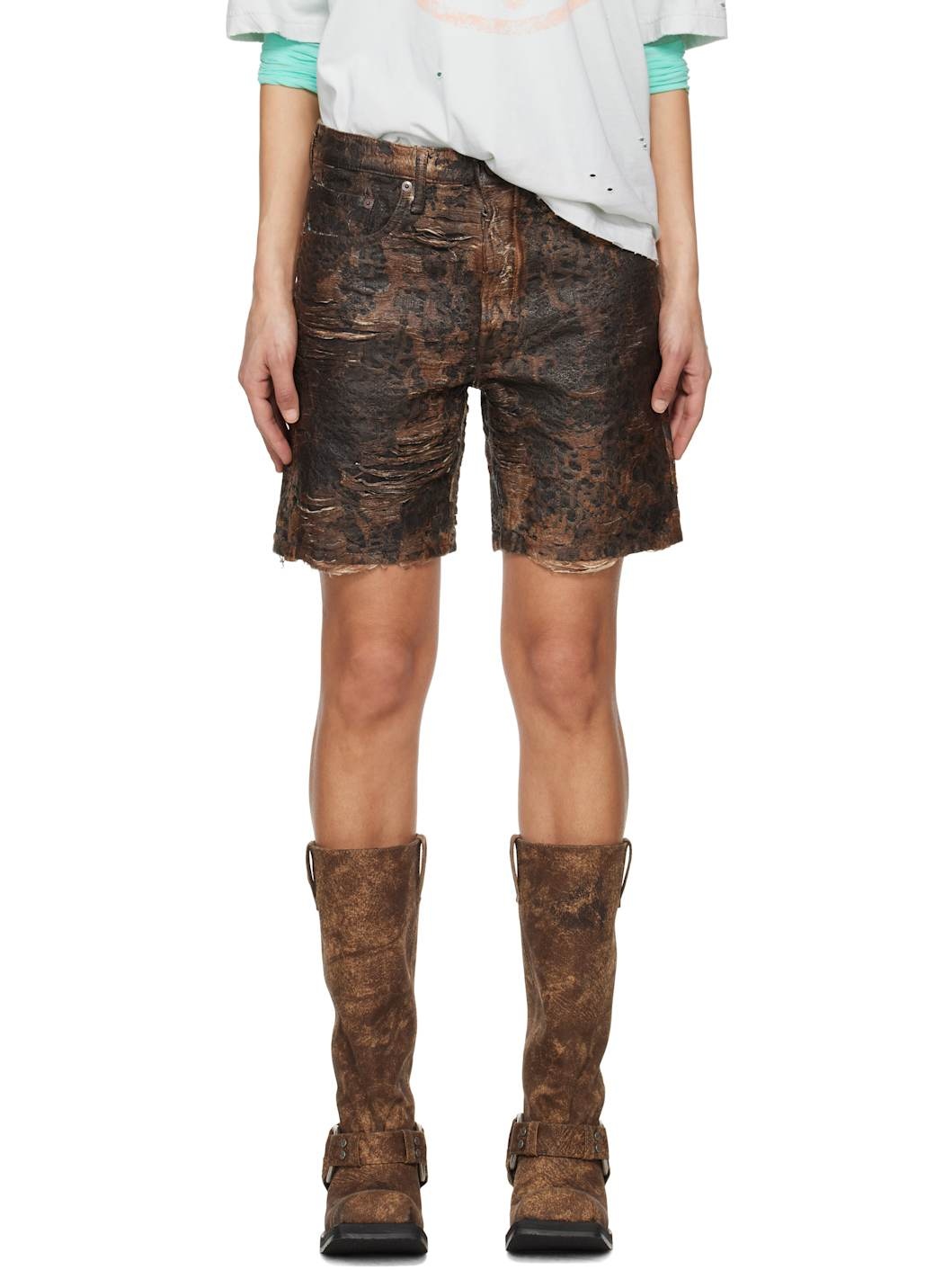 Loose-fit coated non-stretch denim shorts. Fil coupe detailing, distressing, and jacquard graphic pattern throughout. · Low-rise · Belt loops · Five-pocket styling · Button fly · Frayed edge at hem · Logo patch at back waistband · Dropped inseam Supplier color: Brown 100% cotton. Made in Italy 251129F088015