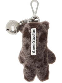 Padded lambskin shearling keychain. · Bag charm clasp and detachable bell at top · Stitching and leather appliques at face · Leather logo patch at back face · H6.5" x W2.5" Supplier color: Chocolate brown Lambskin. Made in Italy 261129F025001