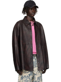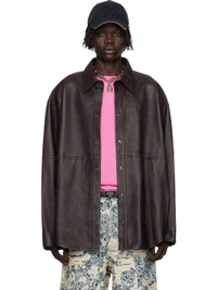 Burgundy Relaxed Fit Leather Overshirt