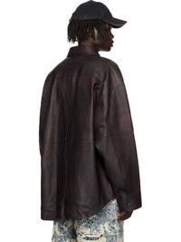 Grained lambskin overshirt. · LWG-certified lambskin · Paneled construction · Discoloration throughout · Spread collar · Press-stud closure · Welt pockets at waist · Shirttail hem · Dropped shoulders · Press-stud barrel cuffs · Logo patch at back collar · Logo-engraved hardware Supplier color: Red/Black 100% lambskin. Made in Turkey 252129M181001