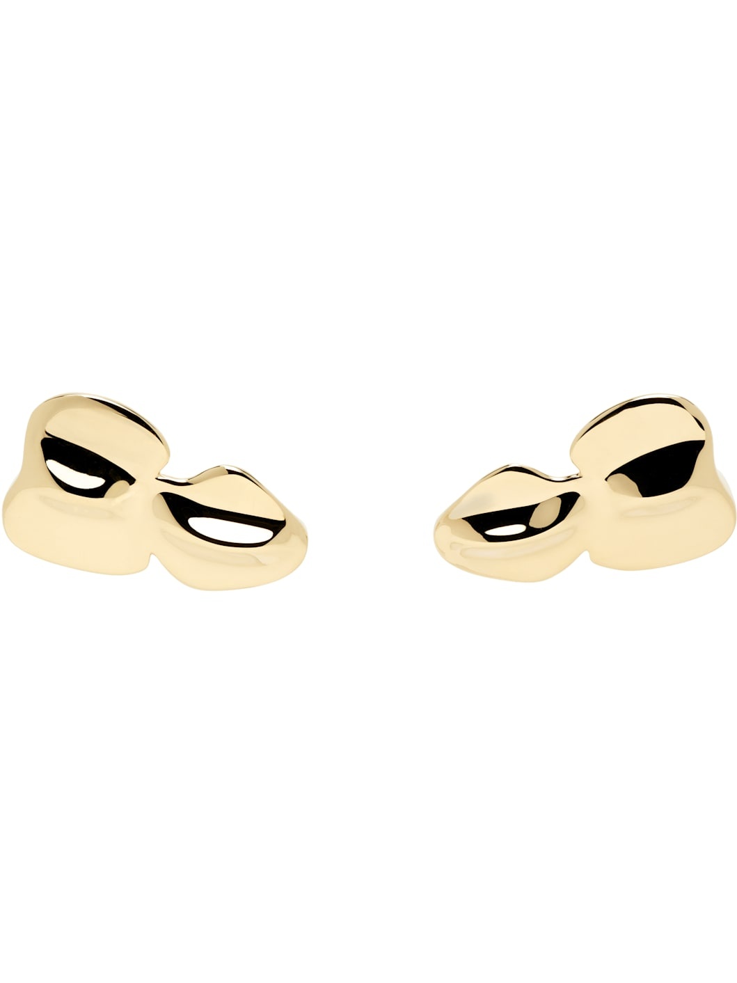 Pair of graphic earrings in gold-tone brass. · Textured detailing throughout · Logo engraved at back face · Post-stud and hinged-post fastening · H2" x W1" Supplier color: Gold Brass. Made in Italy 251129F022004