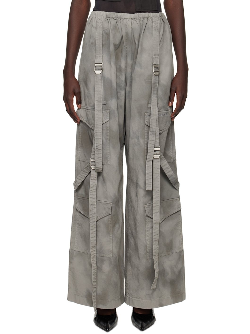 Straight-leg garment-dyed organic cotton twill trousers. Spray paint effect throughout. · Concealed drawstring at elasticized waistband · Four-pocket styling · Adjustable cinch-tabs at front and back · Logo embroidered at front · Cargo pockets at front · Logo-engraved silver-tone hardware Supplier color: Mid grey 100% organic cotton. Made in Romania 242129F086005
