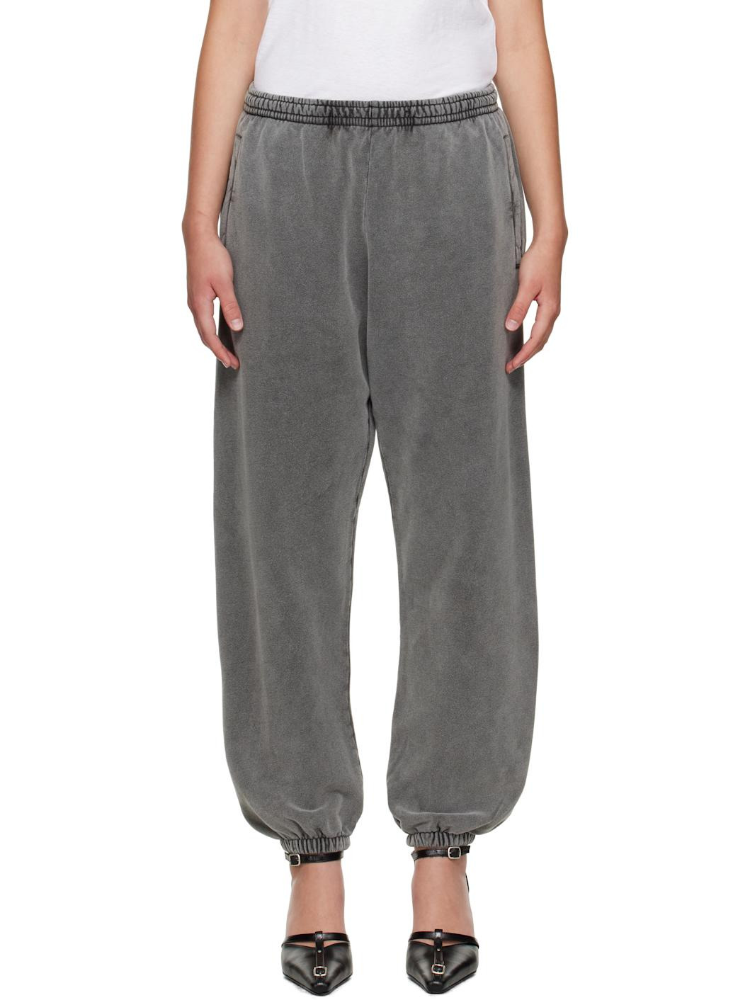 Acid-washed organic cotton fleece sweatpants. · Fading throughout · Mid-rise · Concealed drawstring at elasticized waistband · Two pocket styling · Elasticized cuffs · Cropped leg · Rubberized logo patch at back Supplier color: Faded black 100% organic cotton. Made in Portugal 252129F086002