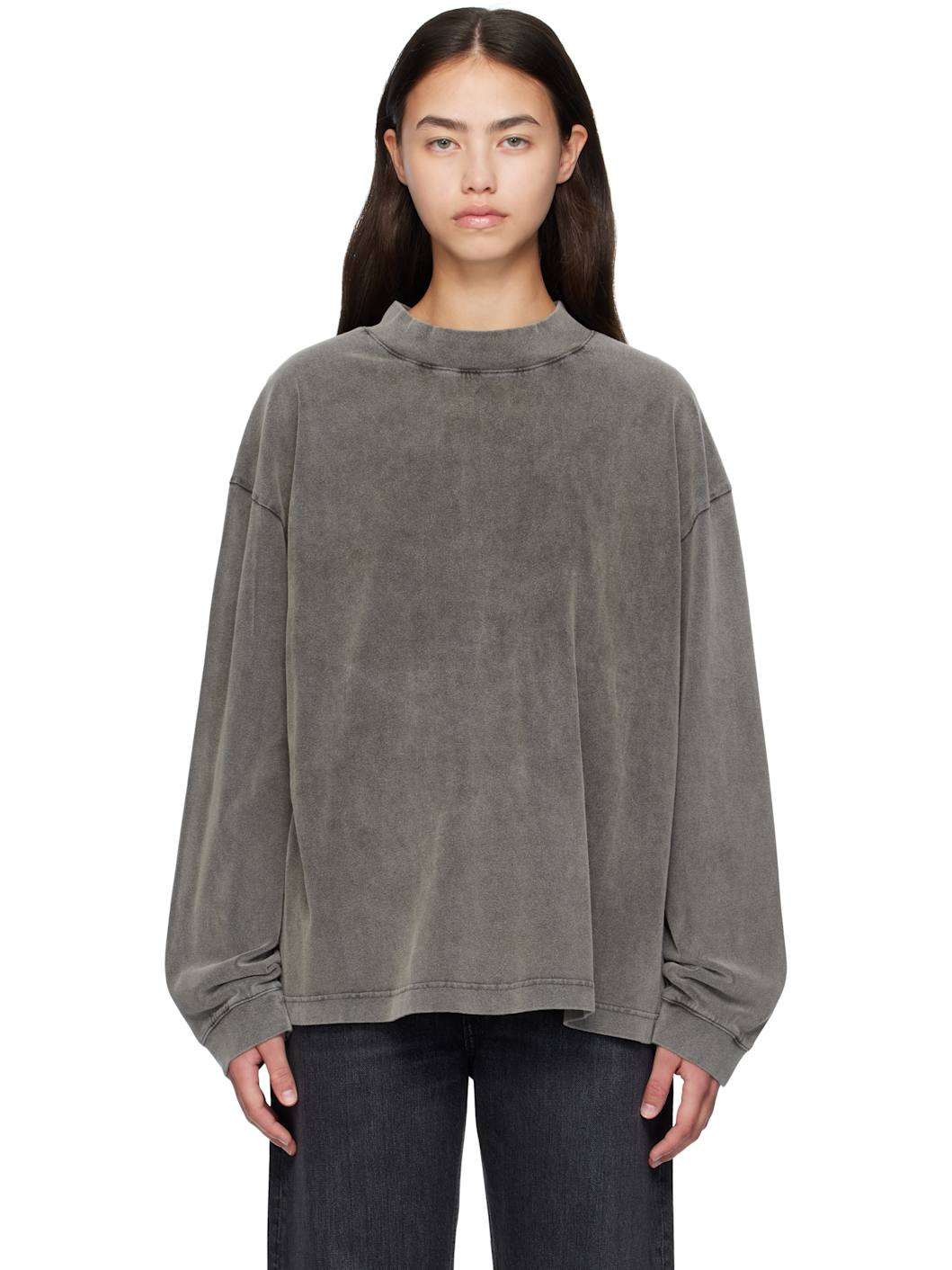 Organic cotton jersey T-shirt. · Fading throughout · Rib-knit mock neck and cuffs · Logo patch at back · Dropped shoulders Supplier color: Faded Black 100% cotton. Made in Portugal 252129F110049
