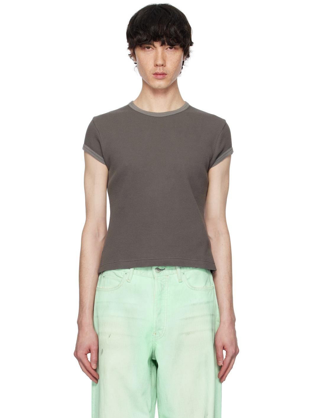 Garment-dyed waffle-knit organic cotton T-shirt. · Rib-knit crewneck and cuffs · Rubberized logo patched at back Supplier color: Faded grey 100% cotton. Made in Portugal 251129M214002