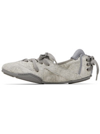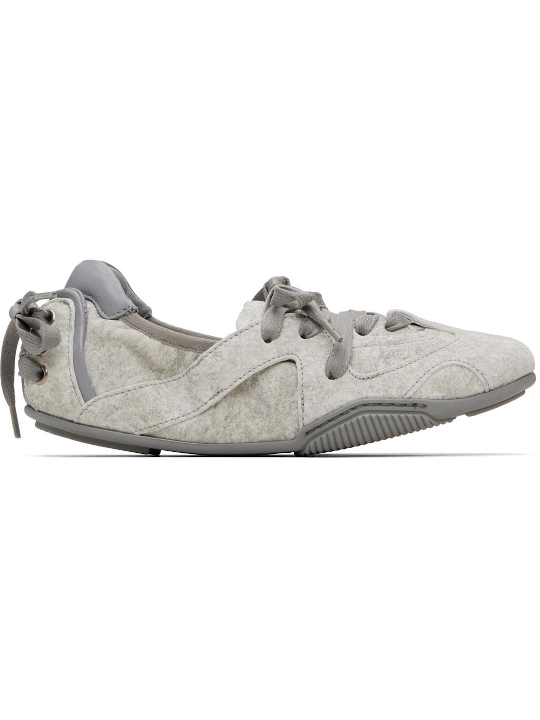 Low-top calfskin suede and buffed lambskin ballerina-style sneakers. · Square toe · Lace-up closure · Logo embossed at padded tongue · Elasticized trim at padded collar · Lace-up detailing at heel counter · Grained lambskin lining · Treaded rubber sole Supplier color: Gray melange Upper: calfskin, lambskin. Sole: rubber. Made in Italy 252129F118004
