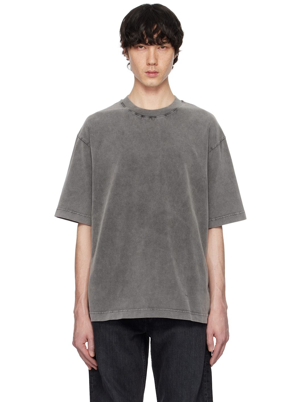 Garment-dyed and peached organic cotton jersey T-shirt. · Rib-knit crewneck · Dropped shoulders · Rubberized logo patch at back Supplier color: Faded black 100% cotton. Made in Portugal 251129M213001