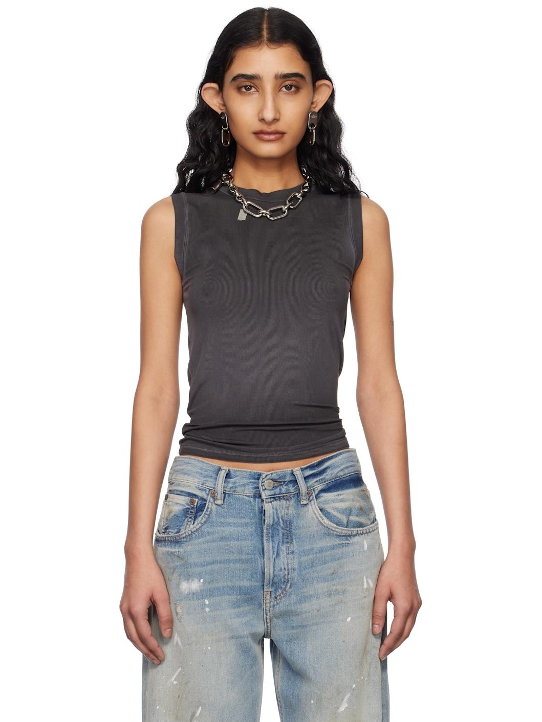 Gray Ribbed Tank Top