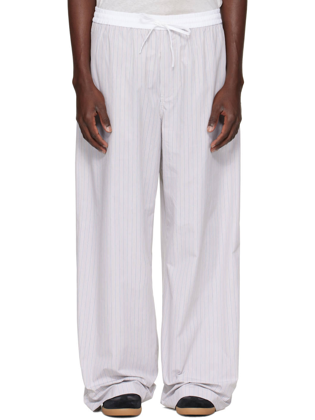 Heavyweight cotton poplin trousers. · Striped throughout · Drawstring at elasticized waistband · Thee-pocket styling · Mock fly · Embroidered logo patch at front leg Supplier color: Multi brown 100% cotton. Made in Portugal 252129M191006