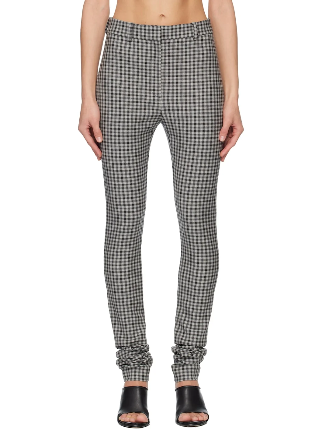 Stretch wool twill leggings. · Check pattern throughout · Belt loops · Zip fly Supplier color: Multi grey 97% wool, 3% elastane. Made in Bulgaria 252129F085001