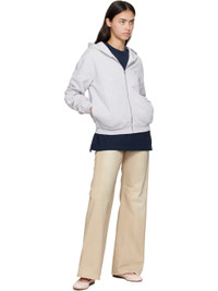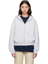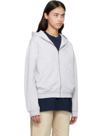GOTS-certified organic cotton fleece hoodie. · Logo printed at hood · Zip closure · Embroidered logo patch at chest · Seam pockets at waist · Rib-knit hem and cuffs Supplier color: Pale grey melange 100% organic cotton. Made in Portugal 252129F097011