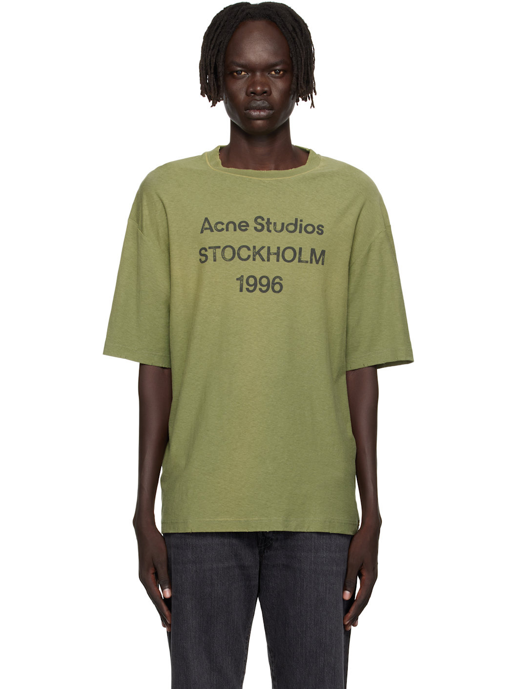 Organic cotton- and true hemp-blend jersey T-shirt. · Discoloration and subtle distressing throughout · Rib-knit crewneck · Logo and text printed at front · Dropped shoulders Supplier color: Olive green 85% cotton, 15% true hemp. Made in Portugal 252129M213030