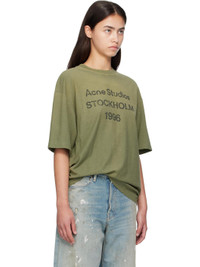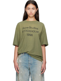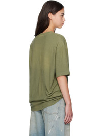 Organic cotton- and True hemp-blend jersey T-shirt. · Sprayed dye throughout · Subtle distressing at rib-knit crewneck, hem, and cuffs · Logo and text printed at front · Dropped shoulders Supplier color: Olive Green 85% cotton, 15% true hemp. Made in Portugal 252129F110053