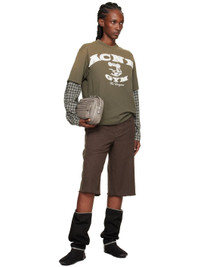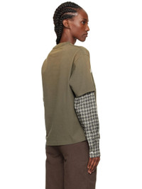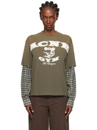 Organic cotton jersey T-shirt. · Rib-knit crewneck · Logo and text applique at front · Graphic and text printed at front · Check pattern at layered sleeves · Buttoned barrel cuffs Supplier color: Vintage green Body: 100% organic cotton. Trim: 100% organic cotton. Made in Portugal 252129F110070