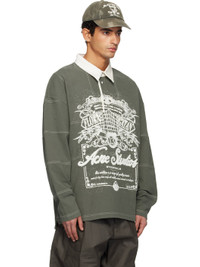 Organic cotton jersey polo. · Paneled construction · Poplin spread collar · Three-button placket · Logo graphic and text printed at front · Tennis-tail hem · Dropped shoulders · Logo printed at back collar · Contrast stitching in white Supplier color: Vintage green 100% organic cotton. Made in Portugal 252129M212000