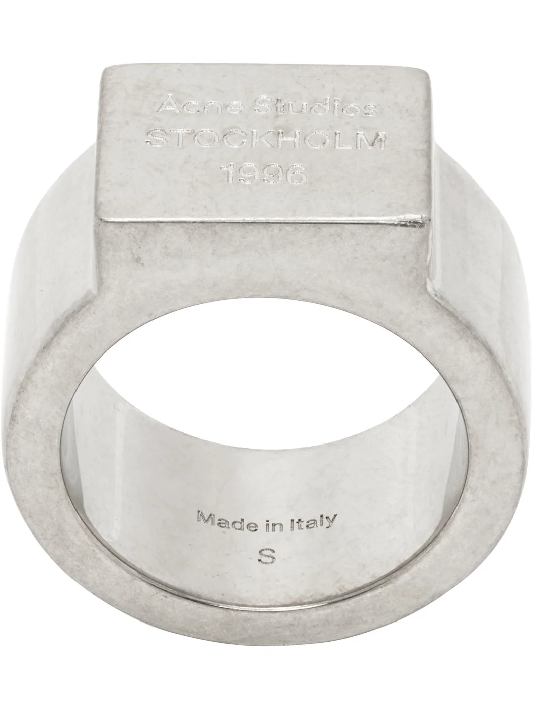 Signet ring in silver-tone brass. Logo engraved at face. Supplier color: Semi matt silver Brass. Made in Italy 252129M147000