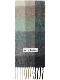 Rectangular brushed alpaca-blend flannel scarf. · Check pattern throughout · Logo patch at face · Fringed detailing at ends · L98.5" x W11" Supplier color: Green/Grey/Black 33% alpaca, 25% wool, 22% nylon, 20% mohair. Made in Italy 252129M150034