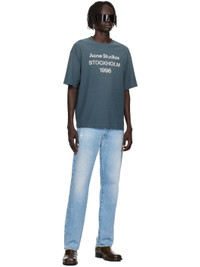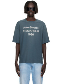 Organic cotton- and true hemp-blend jersey T-shirt. · Discoloration and subtle distressing throughout · Rib-knit crewneck · Logo and text printed at front · Dropped shoulders Supplier color: Deep blue 85% cotton, 15% true hemp. Made in Portugal 252129M213002