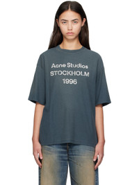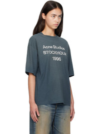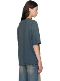 Organic cotton- and True hemp-blend jersey T-shirt. · Sprayed dye throughout · Subtle distressing at rib-knit crewneck, hem, and cuffs · Logo and text printed at front · Dropped shoulders Supplier color: Deep Blue 85% cotton, 15% true hemp. Made in Portugal 252129F110002