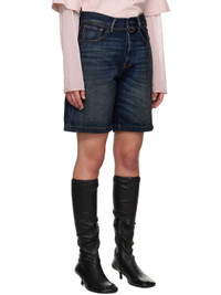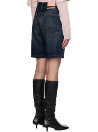 Non-stretch denim shorts. · Fading and whiskering throughout · Straight-leg · Mid-rise · Belt loops and detachable cinch belt · Five-pocket styling · Button fly · Leather logo patch at back waistband · Contrast stitching in tan Supplier color: Dark blue 100% cotton. Made in Italy 252129F088014