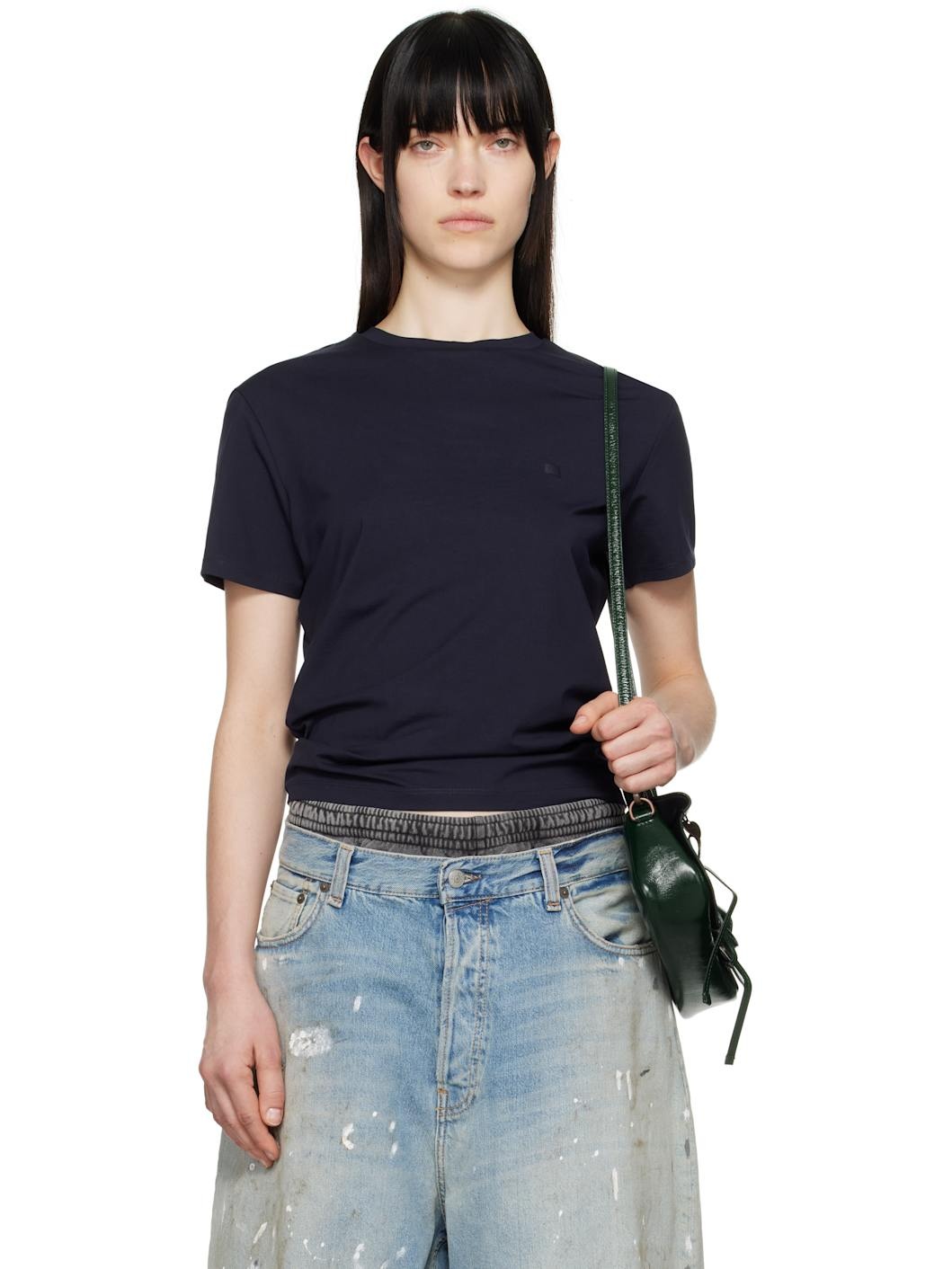 GOTS-certified stretch organic pima cotton jersey T-shirt. · Rib-knit crewneck · Logo patch at chest · Logo printed at back collar Supplier color: Navy blue 90% organic cotton, 10% elastane. Made in Portugal 251129F110020