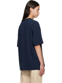 Organic cotton pique T-shirt. · Rib-knit crewneck · Logo embroidered at chest and front waist · Vented side seams · Dropped shoulders Supplier color: Deep blue 100% organic cotton. Made in Portugal 252129F110010
