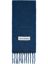 Navy Wool Mohair Narrow Scarf