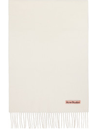 Off-White Fringe Wool Narrow Scarf